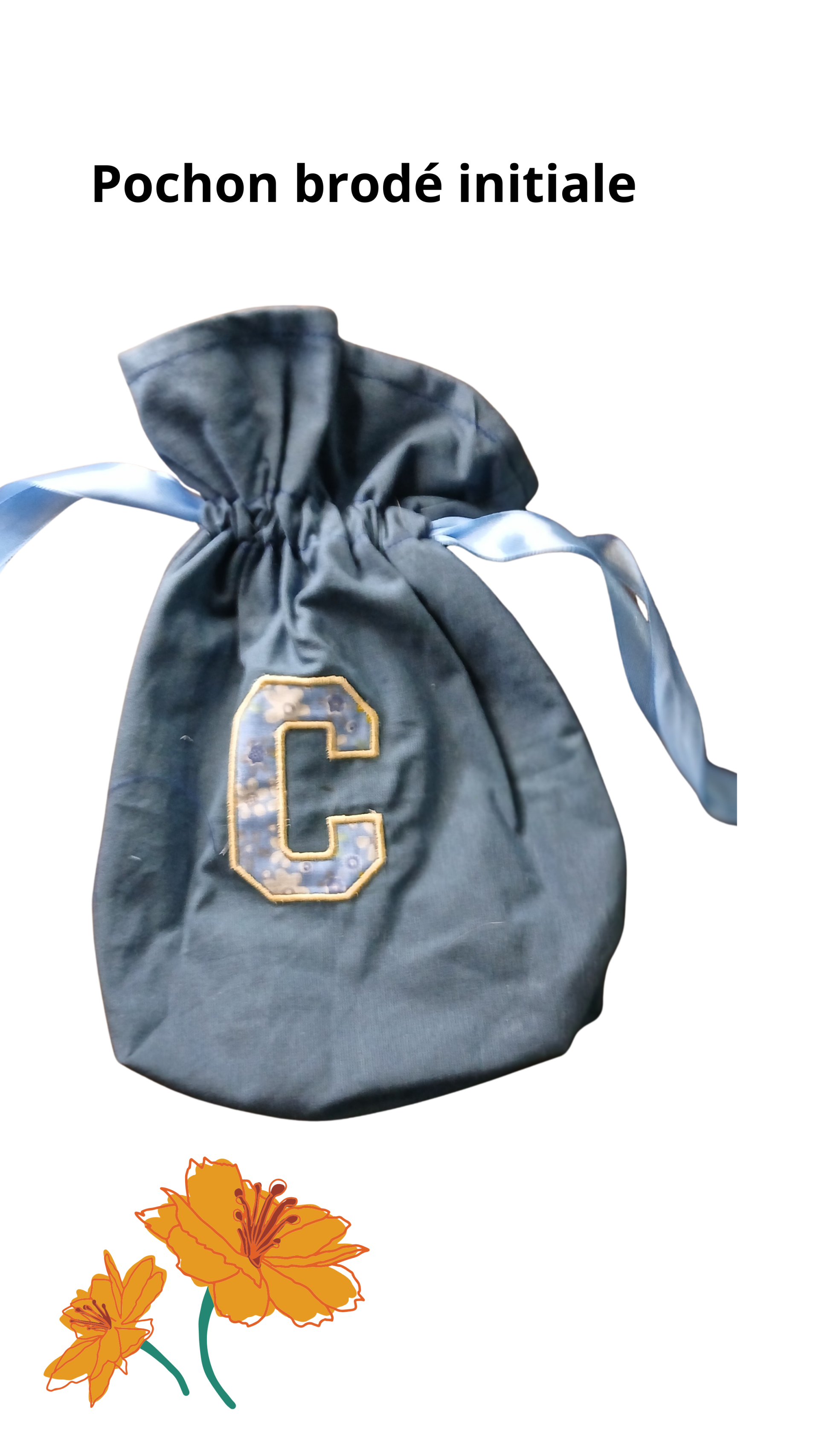 pochon brodé initiale